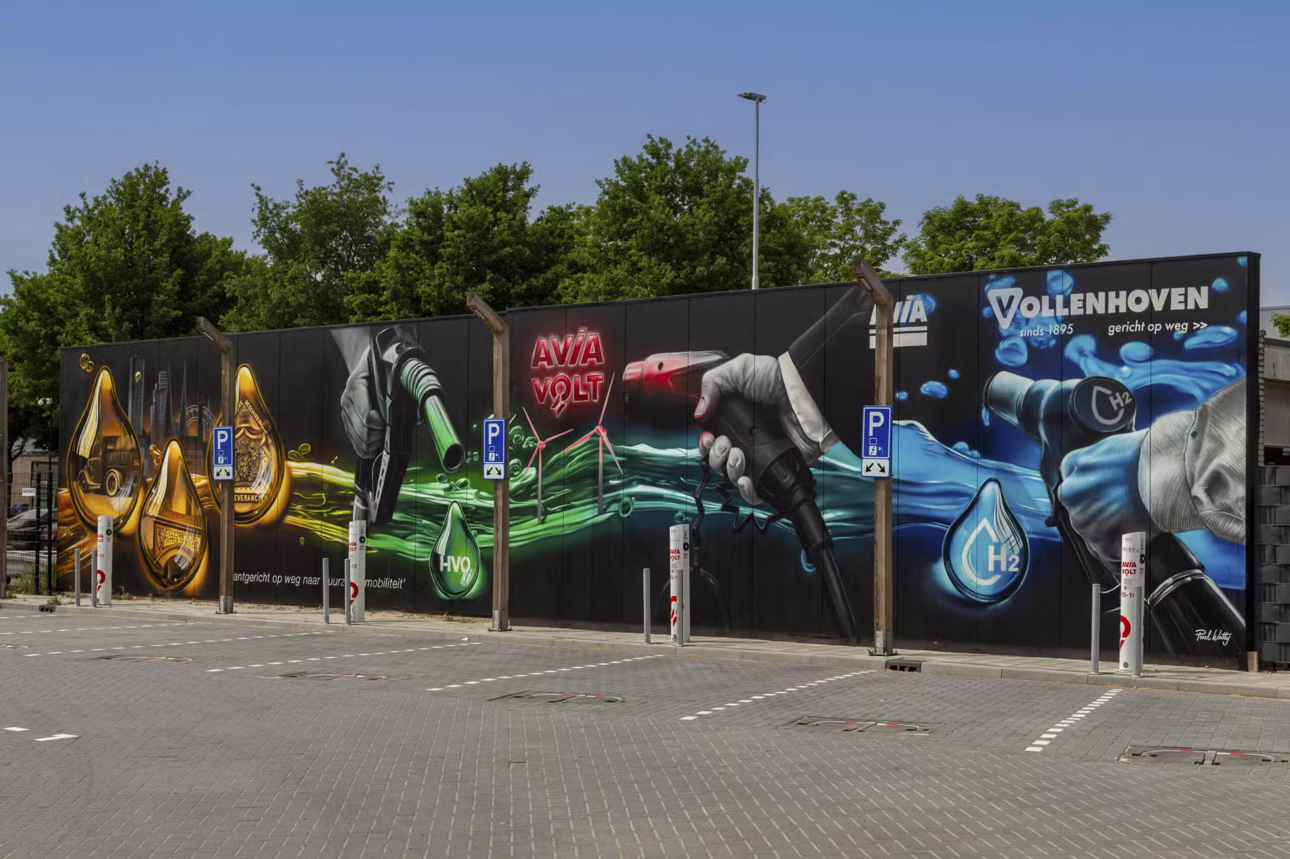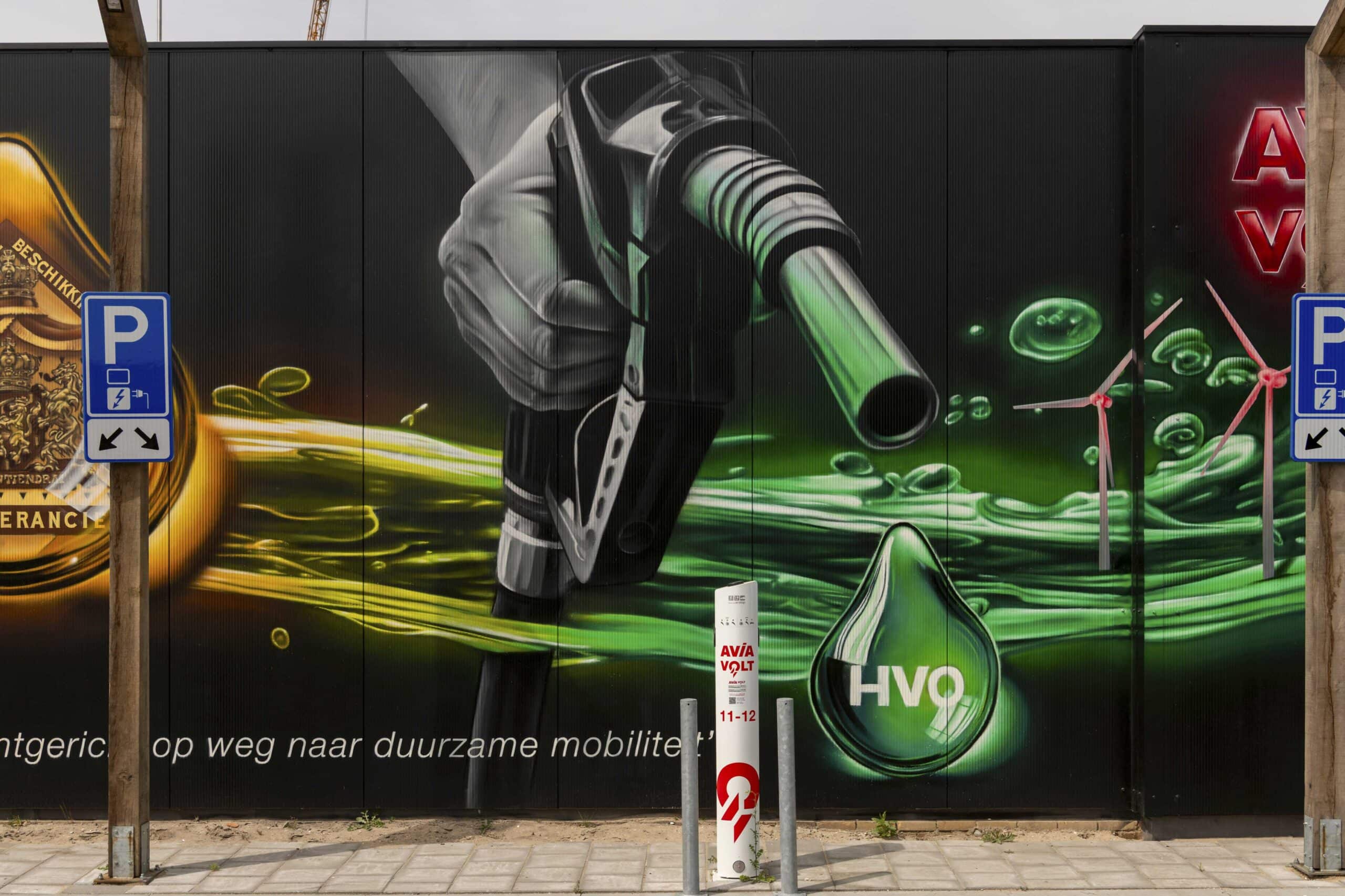 Deze muurschildering vertelt het verhaal van AVIA Vollenhoven, ontstaan uit gesprekken rondom hun 130-jarig bestaan. Het werk laat de transitie zien van fossiele brandstoffen, via biobrandstoffen, naar duurzame energie zoals windenergie, met een duidelijke blik op de toekomst waarin waterstof een sleutelrol speelt.