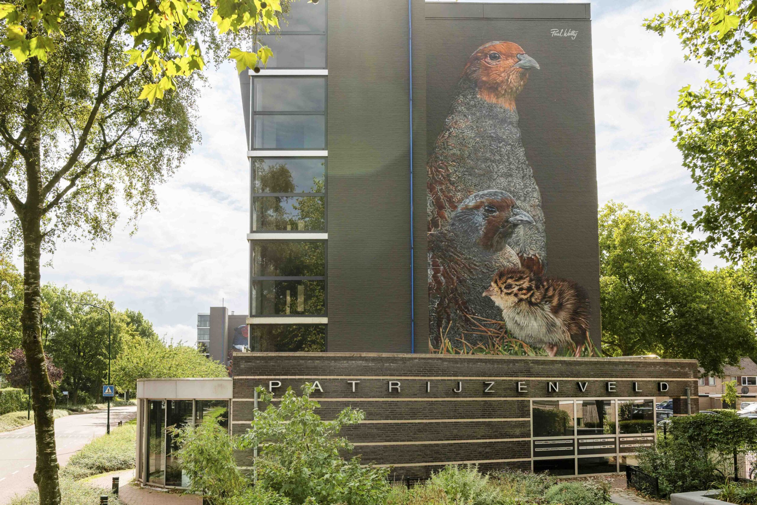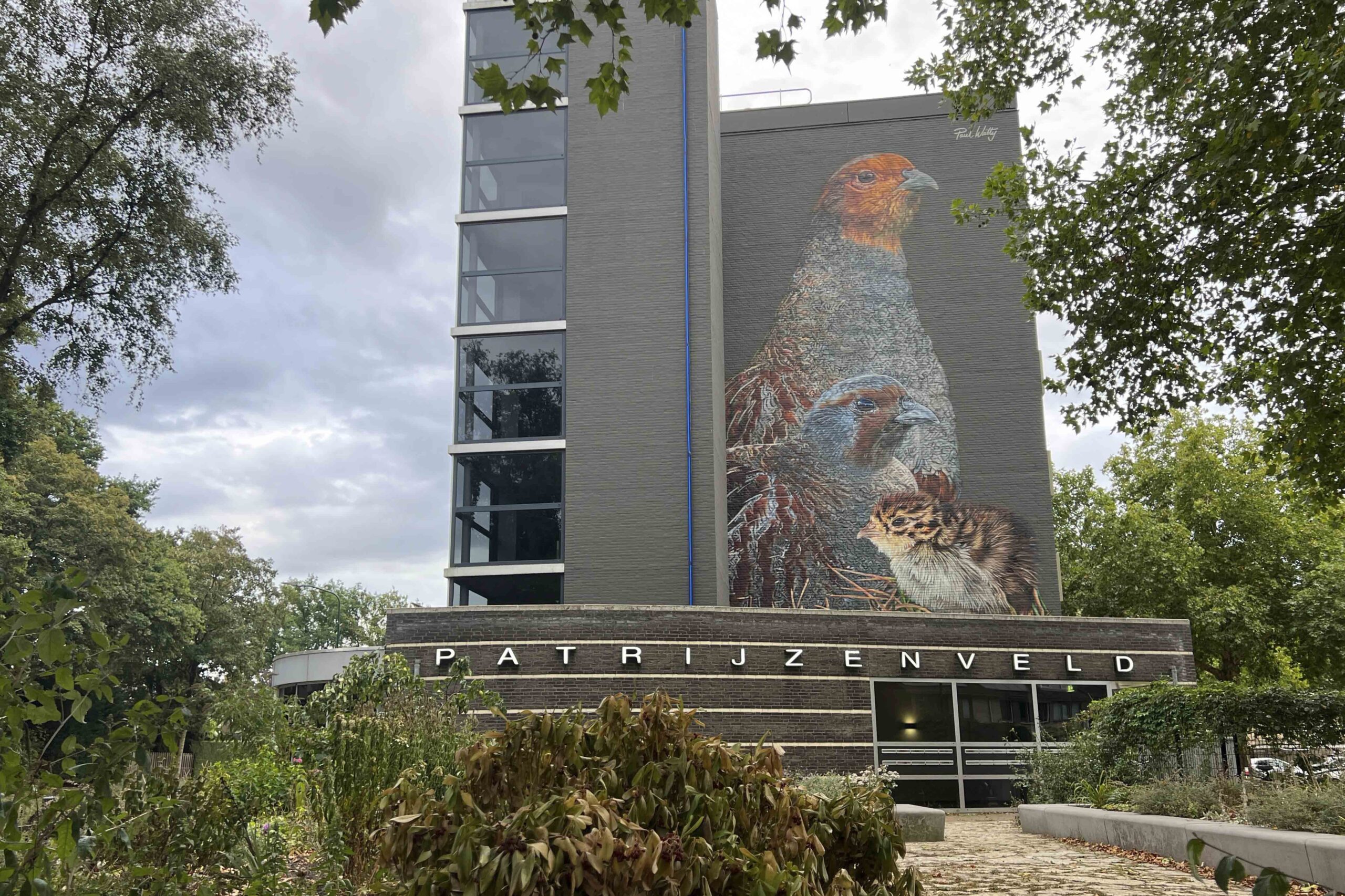 In nauwe samenwerking met de bewoners is gekozen voor het afbeelden van drie patrijzen, een directe verwijzing naar de naam van de locatie. De keuze voor drie patrijzen ontstond vanuit de wens van een bewoner om ook kuikens in het ontwerp terug te laten komen. Het ontwerp verbindt daarmee de omgeving, de identiteit van de plek en de mensen die er wonen.